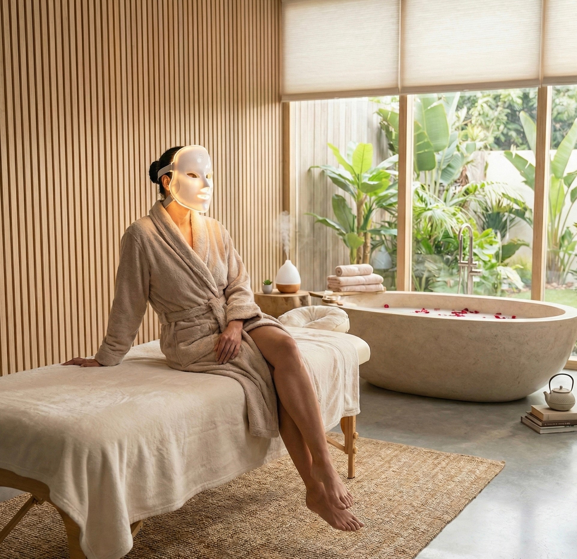 🟢 Groen Licht (Balans & Kalmte): Ideaal voor de gevoelige huid. Het kalmeert, vermindert roodheid, helpt pigmentvlekken te vervagen en zorgt voor een egale teint.